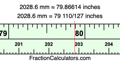 Here is how to convert 2028.6 mm to inches. We will give you the fractional answer, the decimal answer, and illustrate the answer on our tape measure.