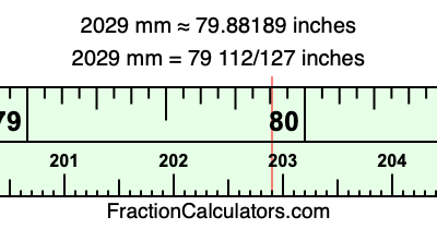 Here is how to convert 2029 mm to inches. We will give you the fractional answer, the decimal answer, and illustrate the answer on our tape measure.