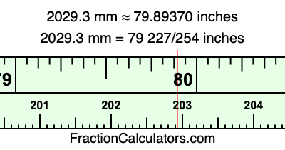 Here is how to convert 2029.3 mm to inches. We will give you the fractional answer, the decimal answer, and illustrate the answer on our tape measure.