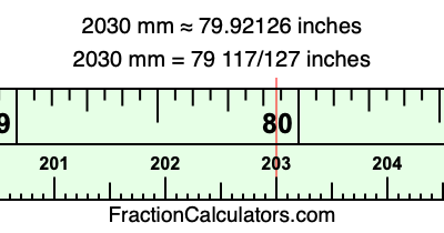 One millimeter is equal to 5/127 inches, and 2030 as a fraction is 2030/1. Therefore, to get the fractional answer to 2030 mm in inches, we multiply 2030/1 by 5/127 and simplify if necessary.