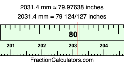 Here is how to convert 2031.4 mm to inches. We will give you the fractional answer, the decimal answer, and illustrate the answer on our tape measure.