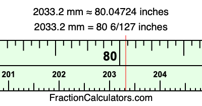 Here is how to convert 2033.2 mm to inches. We will give you the fractional answer, the decimal answer, and illustrate the answer on our tape measure.