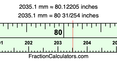 Here is how to convert 2035.1 mm to inches. We will give you the fractional answer, the decimal answer, and illustrate the answer on our tape measure.