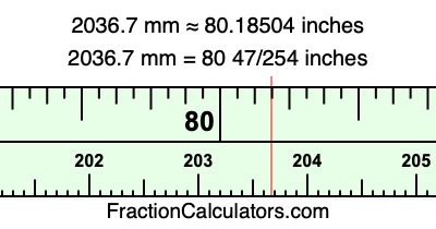 Here is how to convert 2036.7 mm to inches. We will give you the fractional answer, the decimal answer, and illustrate the answer on our tape measure.