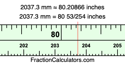 Here is how to convert 2037.3 mm to inches. We will give you the fractional answer, the decimal answer, and illustrate the answer on our tape measure.