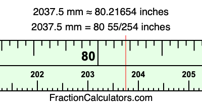 One millimeter is equal to 5/127 inches, and 2037.5 as a fraction is 4075/2. Therefore, to get the fractional answer to 2037.5 mm in inches, we multiply 4075/2 by 5/127 and simplify if necessary.