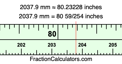 Here is how to convert 2037.9 mm to inches. We will give you the fractional answer, the decimal answer, and illustrate the answer on our tape measure.