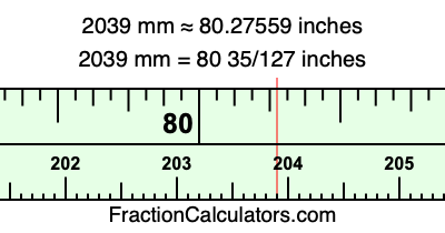 One millimeter is equal to 5/127 inches, and 2039 as a fraction is 2039/1. Therefore, to get the fractional answer to 2039 mm in inches, we multiply 2039/1 by 5/127 and simplify if necessary.