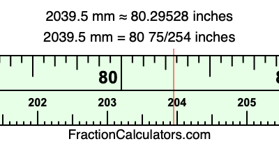 One millimeter is equal to 5/127 inches, and 2039.5 as a fraction is 4079/2. Therefore, to get the fractional answer to 2039.5 mm in inches, we multiply 4079/2 by 5/127 and simplify if necessary.