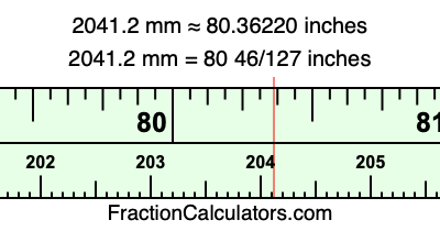 One millimeter is equal to 5/127 inches, and 2041.2 as a fraction is 10206/5. Therefore, to get the fractional answer to 2041.2 mm in inches, we multiply 10206/5 by 5/127 and simplify if necessary.