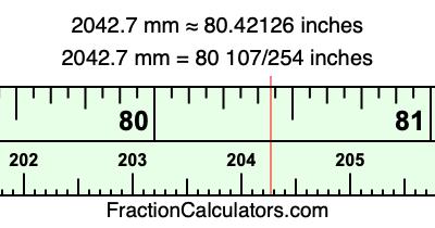 Here is how to convert 2042.7 mm to inches. We will give you the fractional answer, the decimal answer, and illustrate the answer on our tape measure.