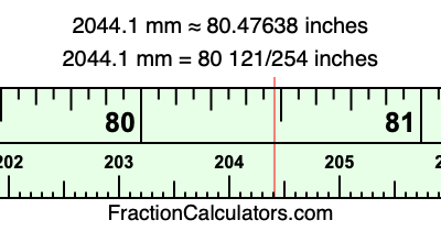 Here is how to convert 2044.1 mm to inches. We will give you the fractional answer, the decimal answer, and illustrate the answer on our tape measure.