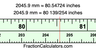 Here is how to convert 2045.9 mm to inches. We will give you the fractional answer, the decimal answer, and illustrate the answer on our tape measure.