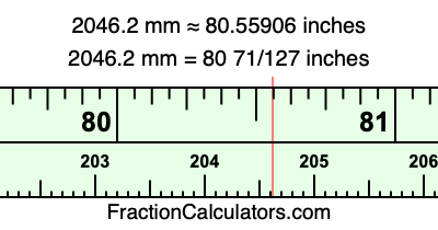 Here is how to convert 2046.2 mm to inches. We will give you the fractional answer, the decimal answer, and illustrate the answer on our tape measure.