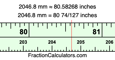 Here is how to convert 2046.8 mm to inches. We will give you the fractional answer, the decimal answer, and illustrate the answer on our tape measure.