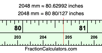 One millimeter is equal to 5/127 inches, and 2048 as a fraction is 2048/1. Therefore, to get the fractional answer to 2048 mm in inches, we multiply 2048/1 by 5/127 and simplify if necessary.