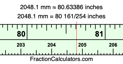 Here is how to convert 2048.1 mm to inches. We will give you the fractional answer, the decimal answer, and illustrate the answer on our tape measure.