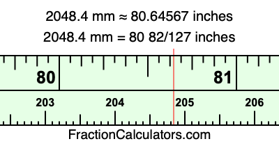 Here is how to convert 2048.4 mm to inches. We will give you the fractional answer, the decimal answer, and illustrate the answer on our tape measure.