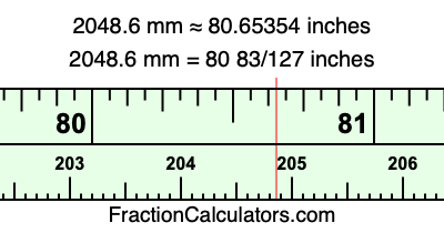 One millimeter is equal to 5/127 inches, and 2048.6 as a fraction is 10243/5. Therefore, to get the fractional answer to 2048.6 mm in inches, we multiply 10243/5 by 5/127 and simplify if necessary.