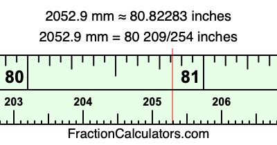 Here is how to convert 2052.9 mm to inches. We will give you the fractional answer, the decimal answer, and illustrate the answer on our tape measure.
