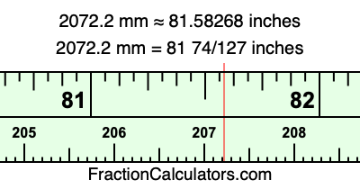 Here is how to convert 2072.2 mm to inches. We will give you the fractional answer, the decimal answer, and illustrate the answer on our tape measure.