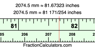 Here is how to convert 2074.5 mm to inches. We will give you the fractional answer, the decimal answer, and illustrate the answer on our tape measure.