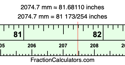 Here is how to convert 2074.7 mm to inches. We will give you the fractional answer, the decimal answer, and illustrate the answer on our tape measure.