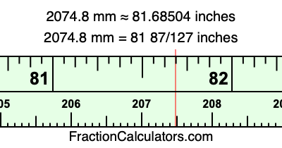 Here is how to convert 2074.8 mm to inches. We will give you the fractional answer, the decimal answer, and illustrate the answer on our tape measure.