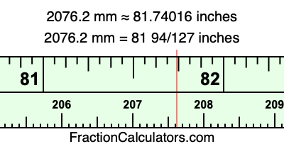 Here is how to convert 2076.2 mm to inches. We will give you the fractional answer, the decimal answer, and illustrate the answer on our tape measure.