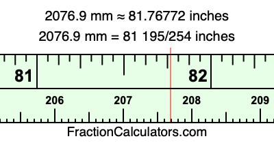 Here is how to convert 2076.9 mm to inches. We will give you the fractional answer, the decimal answer, and illustrate the answer on our tape measure.