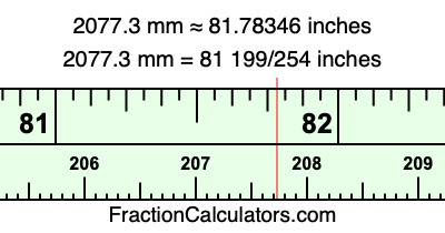 Here is how to convert 2077.3 mm to inches. We will give you the fractional answer, the decimal answer, and illustrate the answer on our tape measure.