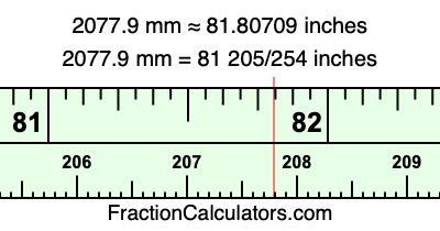 Here is how to convert 2077.9 mm to inches. We will give you the fractional answer, the decimal answer, and illustrate the answer on our tape measure.