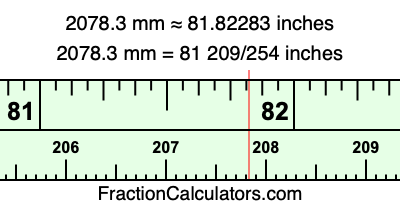 Here is how to convert 2078.3 mm to inches. We will give you the fractional answer, the decimal answer, and illustrate the answer on our tape measure.