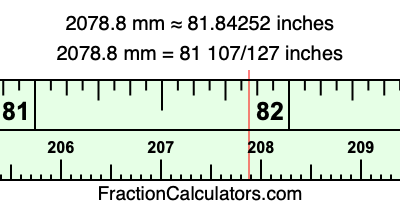 Here is how to convert 2078.8 mm to inches. We will give you the fractional answer, the decimal answer, and illustrate the answer on our tape measure.