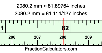 Here is how to convert 2080.2 mm to inches. We will give you the fractional answer, the decimal answer, and illustrate the answer on our tape measure.