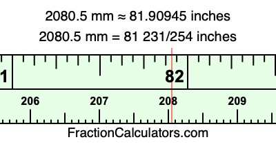 Here is how to convert 2080.5 mm to inches. We will give you the fractional answer, the decimal answer, and illustrate the answer on our tape measure.