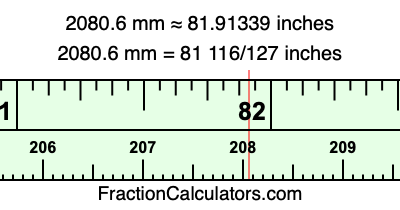 Here is how to convert 2080.6 mm to inches. We will give you the fractional answer, the decimal answer, and illustrate the answer on our tape measure.