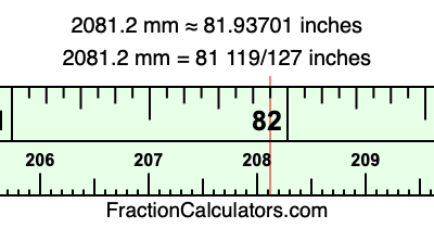 Here is how to convert 2081.2 mm to inches. We will give you the fractional answer, the decimal answer, and illustrate the answer on our tape measure.