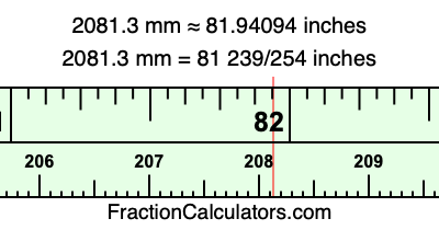 Here is how to convert 2081.3 mm to inches. We will give you the fractional answer, the decimal answer, and illustrate the answer on our tape measure.
