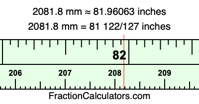Here is how to convert 2081.8 mm to inches. We will give you the fractional answer, the decimal answer, and illustrate the answer on our tape measure.