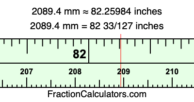 Here is how to convert 2089.4 mm to inches. We will give you the fractional answer, the decimal answer, and illustrate the answer on our tape measure.