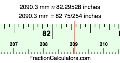 Here is how to convert 2090.3 mm to inches. We will give you the fractional answer, the decimal answer, and illustrate the answer on our tape measure.