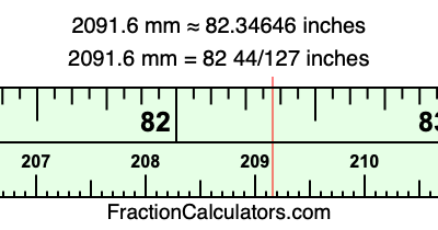 Here is how to convert 2091.6 mm to inches. We will give you the fractional answer, the decimal answer, and illustrate the answer on our tape measure.