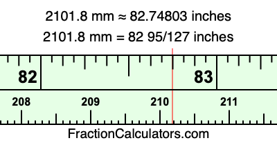 Here is how to convert 2101.8 mm to inches. We will give you the fractional answer, the decimal answer, and illustrate the answer on our tape measure.