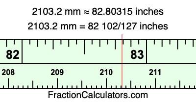 Here is how to convert 2103.2 mm to inches. We will give you the fractional answer, the decimal answer, and illustrate the answer on our tape measure.