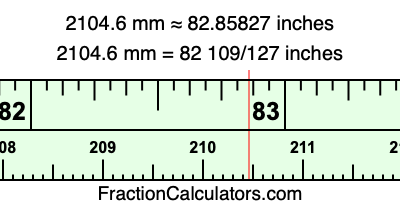 Here is how to convert 2104.6 mm to inches. We will give you the fractional answer, the decimal answer, and illustrate the answer on our tape measure.