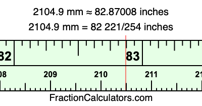 Here is how to convert 2104.9 mm to inches. We will give you the fractional answer, the decimal answer, and illustrate the answer on our tape measure.