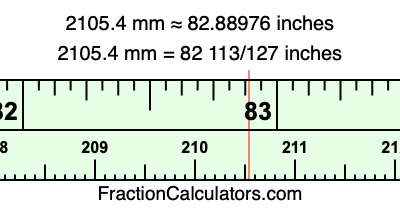 Here is how to convert 2105.4 mm to inches. We will give you the fractional answer, the decimal answer, and illustrate the answer on our tape measure.