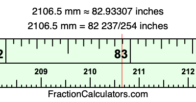 Here is how to convert 2106.5 mm to inches. We will give you the fractional answer, the decimal answer, and illustrate the answer on our tape measure.