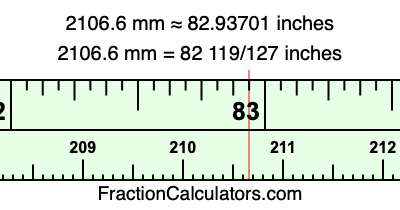 Here is how to convert 2106.6 mm to inches. We will give you the fractional answer, the decimal answer, and illustrate the answer on our tape measure.